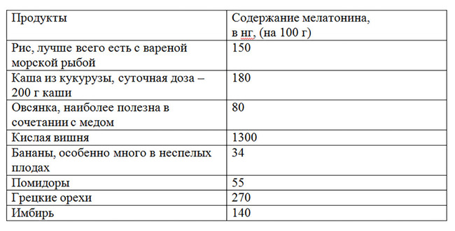 Есть ряд продуктов с достаточно высоким содержанием мелатонина. Только на них полагаться не стоит, т.к. выраженного снотворного эффекта не будет. Но все же стоит включать их в свое меню.Если хотите расслабиться и успокоиться, то ешьте яйца. Они являются источниками холина, который необходим, чтобы запустить процессы торможения центральной нервной системы.