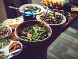 Переложить в жаровню слой баклажанов, сверху слой грибов с луком, солить и перчить каждый слой.