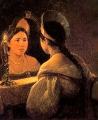 Для гадания потребуются два больших зеркала (желательно одинаковые по величине) и две свечи. Зеркала следует установить друг напротив друга. Свечи можно поставить около одного зеркала (которое висит на стене), а второе зеркало лучше держать так, чтобы из направленного зеркала в другом зеркале на стене получился длинный коридор, освещенный огнями. Именно в конце этого коридора и должен появиться суженый!