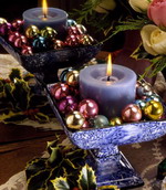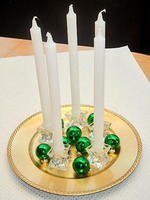 Для первой композиции вам понадобятся несколько свечей, парочка елочных игрушек и поднос, лучше всего стеклянный или металлический.