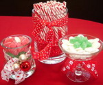 Изобилие конфет в сияющих разноцветных обертках само по себе свидетельствует о празднике, а дополненное лентами или хрустальной посудой создает оригинальную новогоднюю композицию. Яркими лентами можно украсить и совсем неожиданные вещи, например, люстру или комнатные растения.
