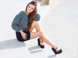 На сей раз знакомый леопард представлен в блузке рубашечного фасона. Мини юбка, снабженная воланом, придает образу женственность.