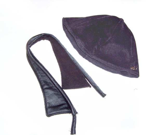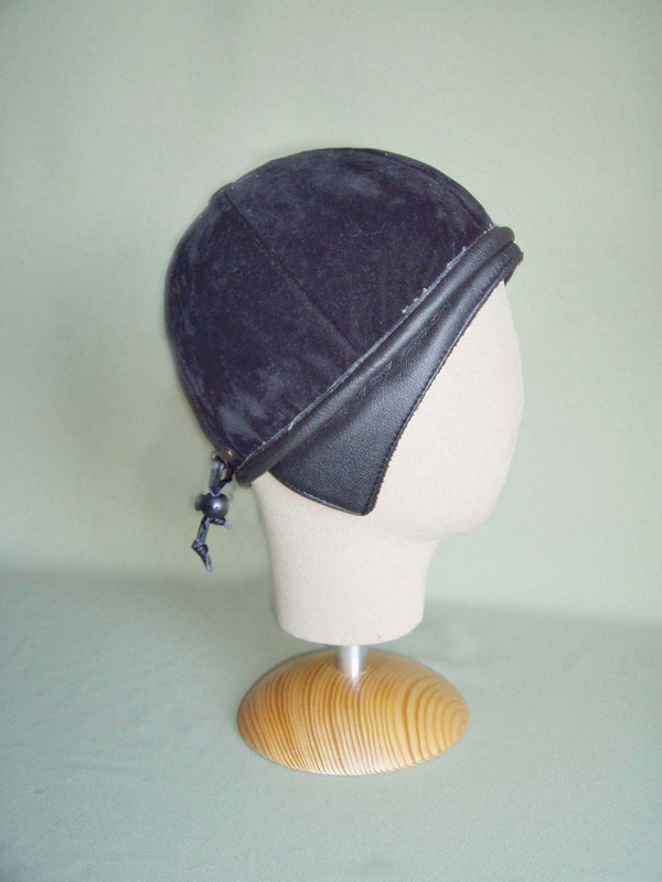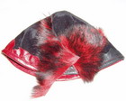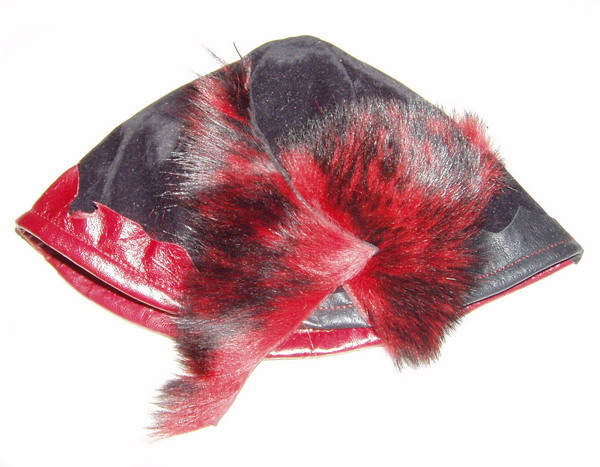 С боку шапочку украсьте произвольными кусочками меха и кожи.