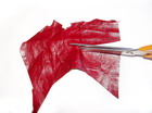 Из кожи вырежьте полоски шириной 7 см. Верх полоски сделайте нарочито неровным.