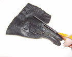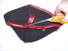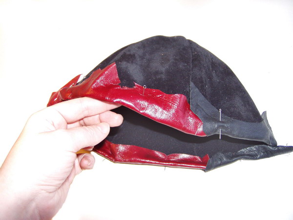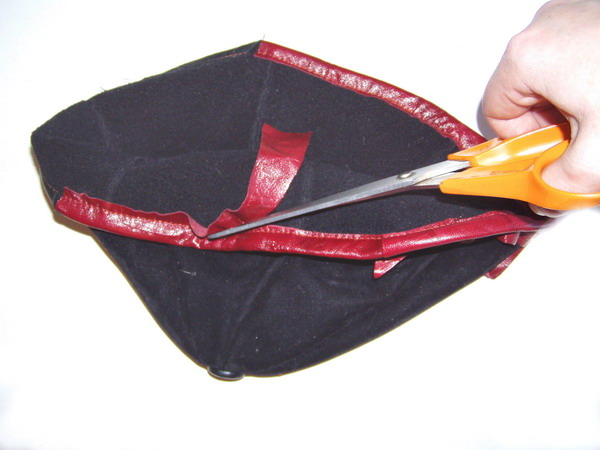 Прострочите кожаную обтачку на расстоянии 1 см от края. С изнаночной стороны срежьте излишки кожи как можно ближе ко шву.