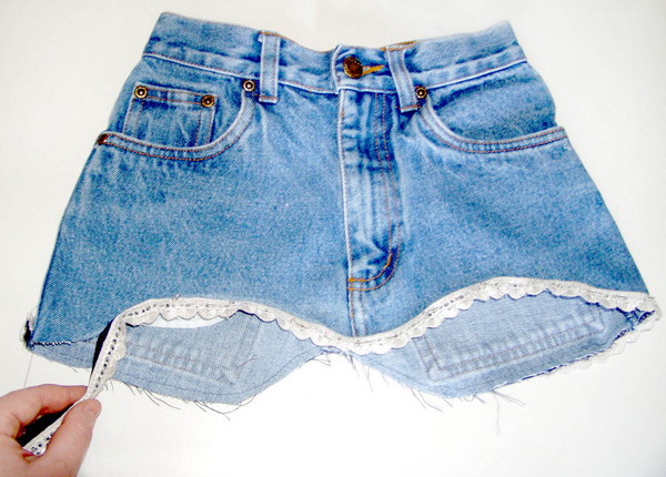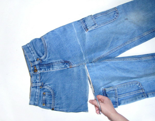 У джинсов отрежьте верхнюю часть.
