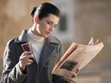 Необыкновенно элегантное пальто в черно-белую клетку. Узкие кожаные брюки, небрежно повязанный шарф и большая сумка дополняют этот стильный и дерзкий образ.