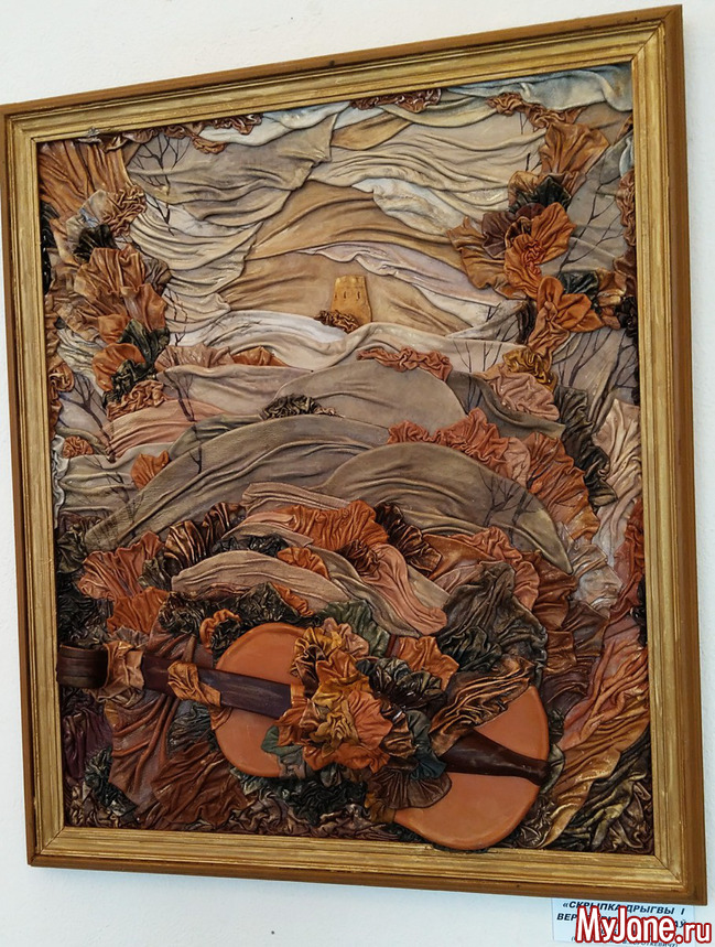 Меня очень воодушевила выставка художницы, я нашла в гардеробе несколько кожаных вещей, которые надеюсь превратить в панно, вооружившись знаниями, полученными из книги Кожевниковой «Фантазии из кожи».