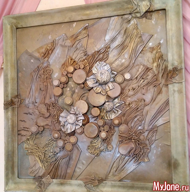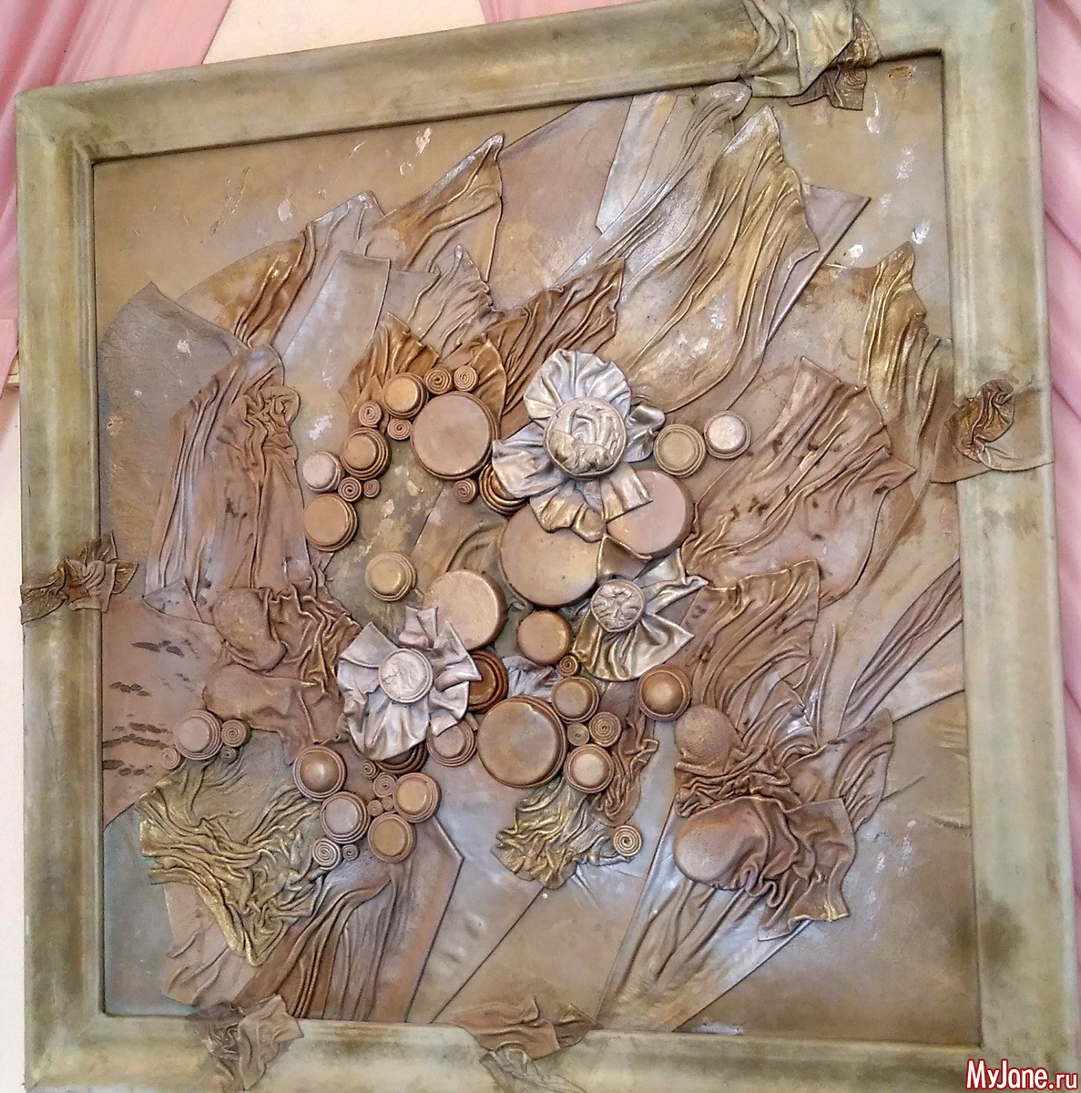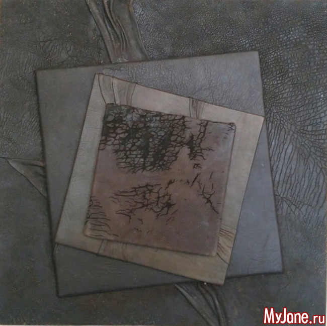 Иногда несколько мазков краски или патины придают картине праздничное и жизнерадостное настроение, а тиснение, сформированные руками складки кожи, картон, обтянутый кожей – объем.