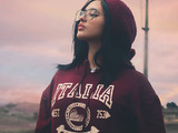 Светло-розовый цвет находится на пике моды. Здесь он скомбинирован с черным и белым, что делает модель спортивно-графической. И снова толстовка имеет укороченную длину лишь до талии.Украшением этой розовой модели служит эффектная белая шнуровка с широкими декоративными шнурками.
