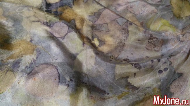 Получаем отпечаток растения на ткани при очень тесном их контакте (ткани и растения), высокой влажности и повышенной температуре.