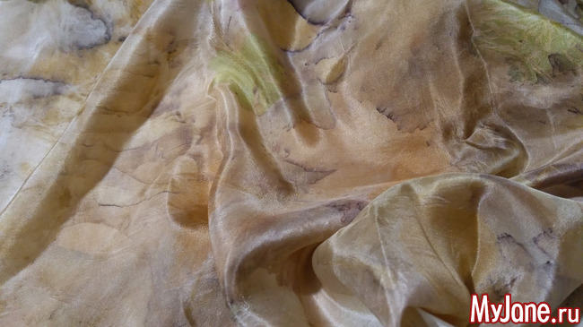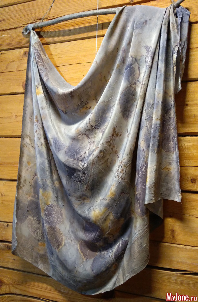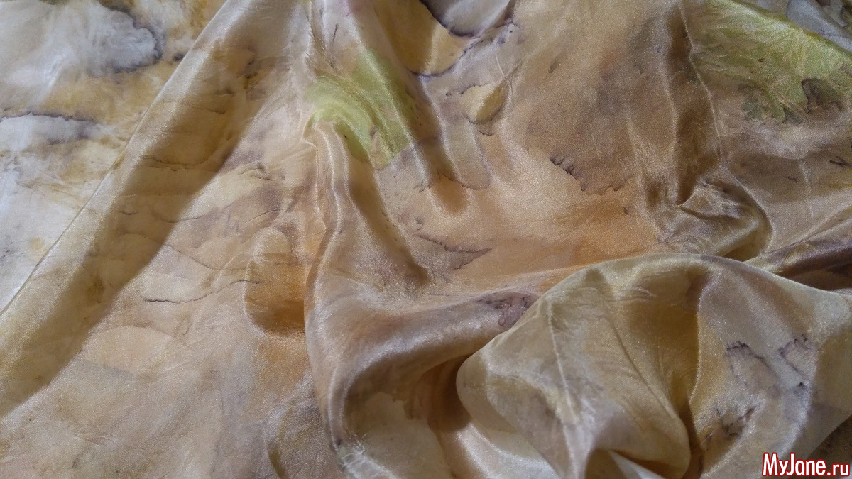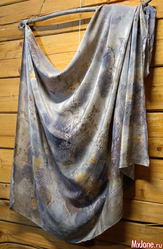 Шелковый шарф, окрашен отваром зрелых стручков катальпы: