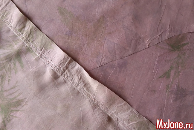 На фото ниже - шелк окрашен ягодами черемухи. Шелк, который на фото ниже выстиран в щелочной среде (хозяйственным мылом), другой же выстиран нейтральным средством (шампунем) и выполоскан в воде с добавлением уксуса. Невооруженным глазом видно, что получились разные оттенки цвета.