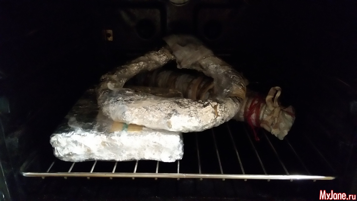 Вместо варки "рулет" можно запечь при минимальной температуре, но в духовке обязательно должна стоять посуда с водой.