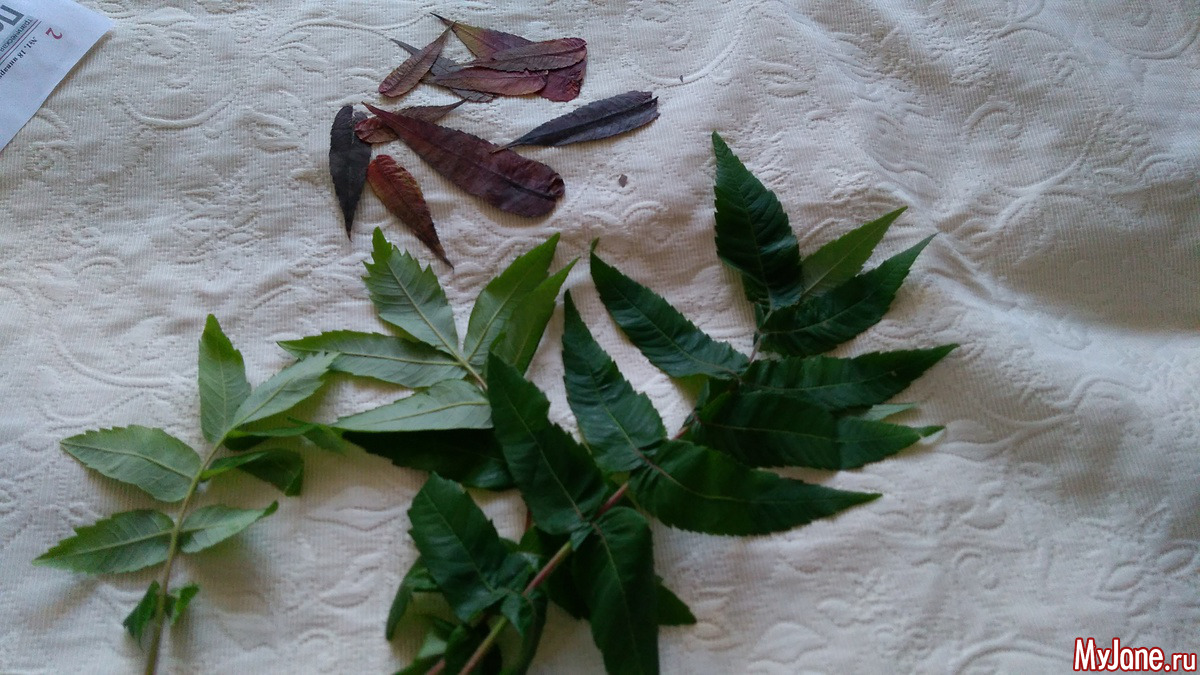 Уксусное дерево или сумах содержит много танинов как в шишке, так и в листьях.