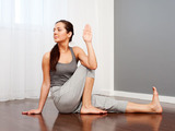 После выполнения предыдущей асаны вернитесь к опоре на обе ладони и черед сторону сядьте на пол. Одну ногу по всей длине вытяните на полу, вторую – согните в колене и разместите ее стопу на полу за коленом прямой ноги. Корпус же разверните в сторону согнутой нижней конечности, надавив локтем противоположной руки на ее колено – Половина Позы бога рыб (Ардха Матсиендрасана I). Зафиксируйте положение на 5 дыхательных циклов, затем повторите скрутку в другую сторону.