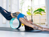 Приняв на колесо упор бедрами, можно учиться балансировать в Позе кузнечика (Шалабхасане) и т.д.