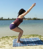 4. руки свободно опустите вдоль корпуса, выпрямите спину, раскройте грудь, макушкой головы потяните себя вверх.