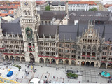 Новая Ратуша, словно ажурная корона на правильном величественном образе площади Марии. Фигура «мюнхенского младенца» на центральном шпиле башни благословляет Мюнхен. Вдоль фасада ратуши установлены скульптуры баварских королей династии Виттельсбахов. В целом здание смотрится достаточно монументально и одновременно изящно, пронизывая пространство своим остроконечным кружевом. Фасад ратуши растянулся на 100 метров, в здании 400 комнат, общая площадь 9 тысяч квадратных метров. Для посещения открыта приблизительно десятая часть. Работу городских властей никак не смущают толпы туристов, которые частично имеют доступ в здание. В этом плане немцы очень лояльны и либеральны.