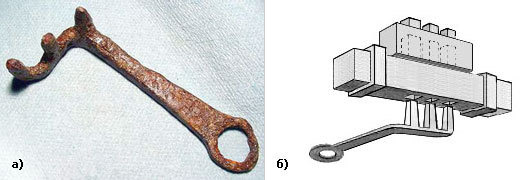 Сами замки были просты в устройстве. Дверные створки соединялись деревянной задвижкой с дырками. В эти дырки проваливались деревянные шипы. Ключ просовывался под засов, колышки которого соответствовали пазам в задвижке. Они выдавливали шипы из пазов и засов вынимался.