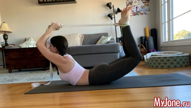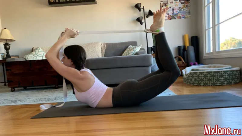 Обратите внимание, что напряжены в Позе лука должны быть по большей части ноги, а руки и спина – расслаблены. Если вы чувствуете, что от практик Дханурасаны у вас устает поясница, то, значит, вы сообщаете ей чрезмерный залом и напряжение. Чтобы избежать этого, новичкам советуем делать Позу лука с ремешком для йоги. Для этого ремень нужно накинуть на лодыжки и руками тянуть его концы.