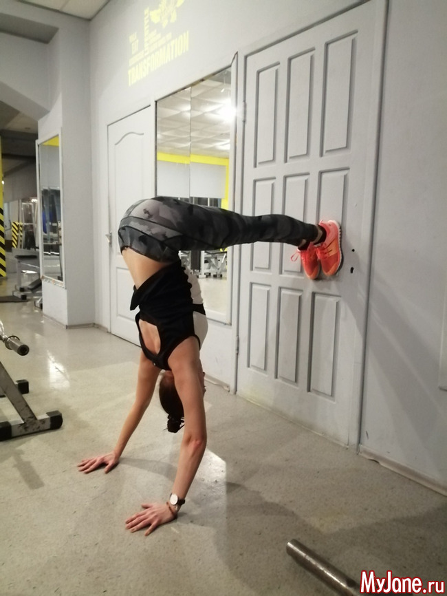 Также баланс на руках у стены можно выполнять, располагая ноги параллельно полу и перпендикулярно корпусу.