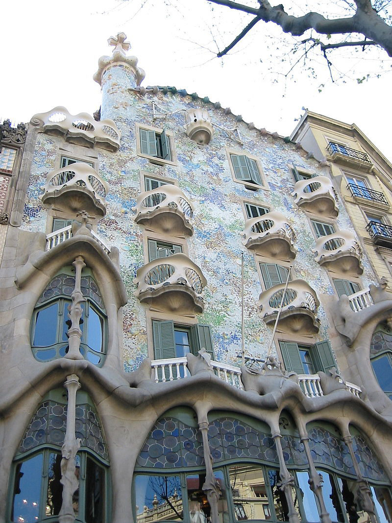 А вот дом Бальо (1904-1906) в центре Барселоны вообще известен как «Дом из костей» или «Дом-дракон». Горбатая крыша действительно напоминает хребет дракона, мозаичный фасад меняет цвет в зависимости от освещения (а ведь драконам тоже иногда свойственно менять расцветку!), балконы выполнены в виде черепов или мушиных мордочек с глазами…