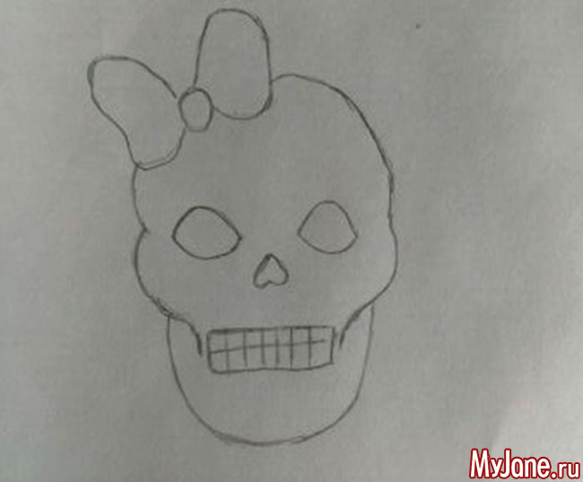 Для начала необходимо на листе бумаги нарисовать наш будущий череп. На фото трафарет немного увеличен. Размер готовой броши 11х7 см.