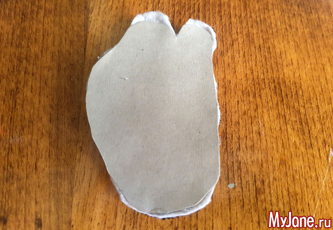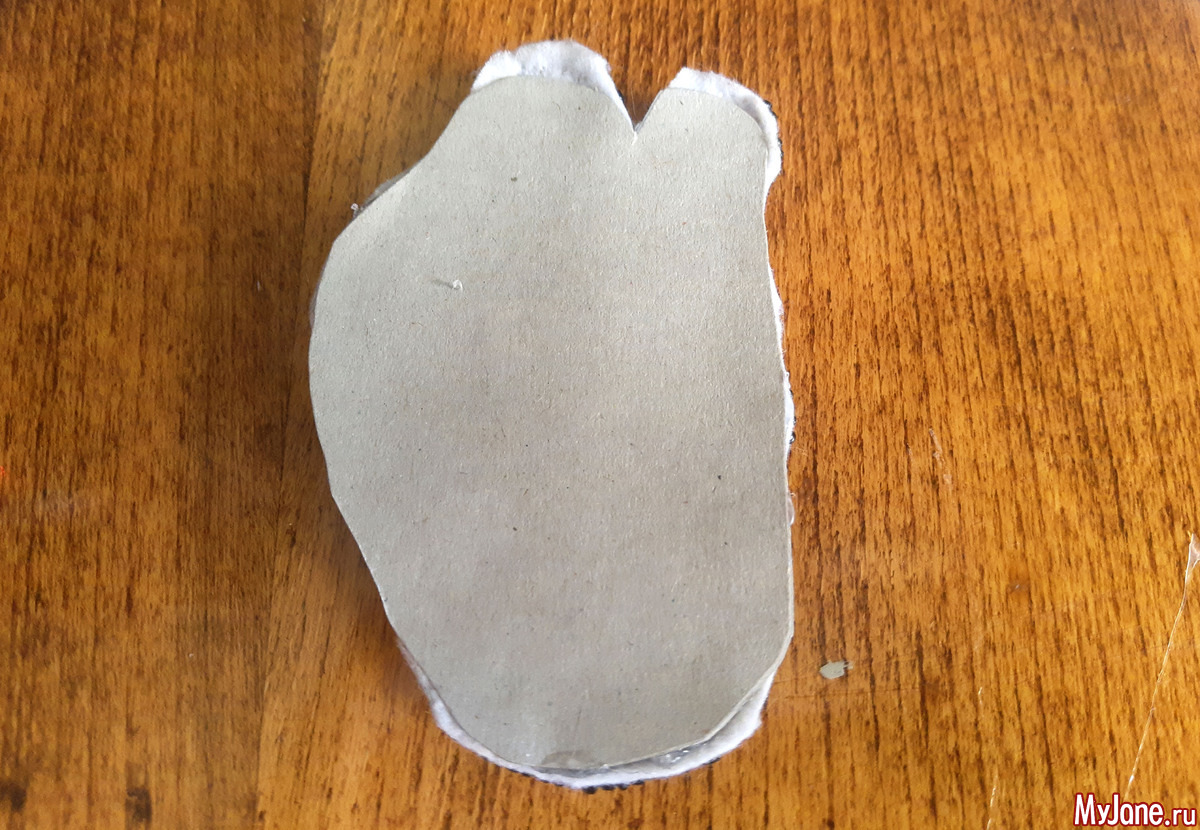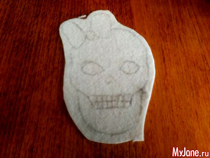 На листе картона рисуем очертание черепа. Немного обрезаем лишний фетр, главное, не переусердствовать. Приклеиваем картон с изнанки изделия.
