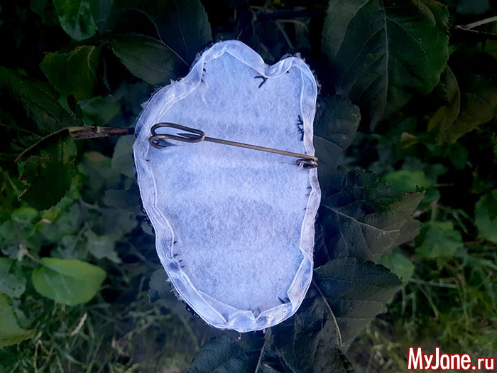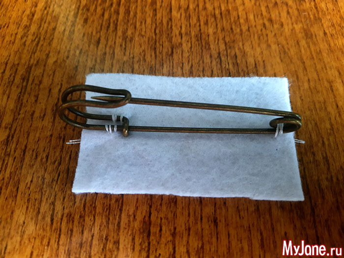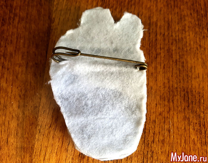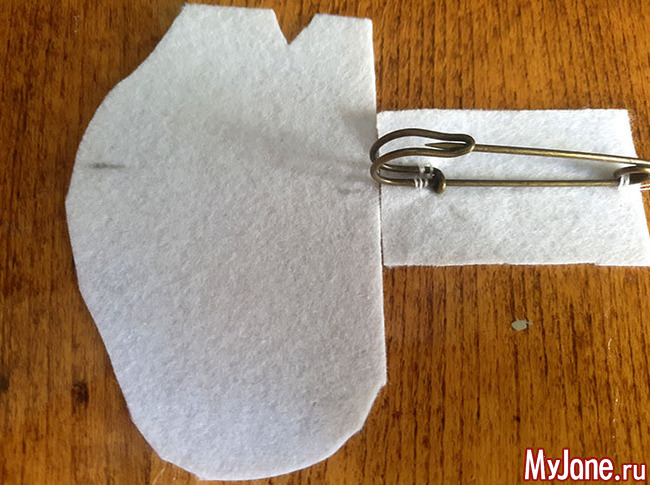 Вырезаем кусочек фетра по размеру нашей булавки. Также вырезаем заготовку из фетра по размеру черепа. Пришиваем булавку к заготовленному кусочку фетра.
