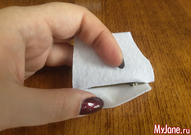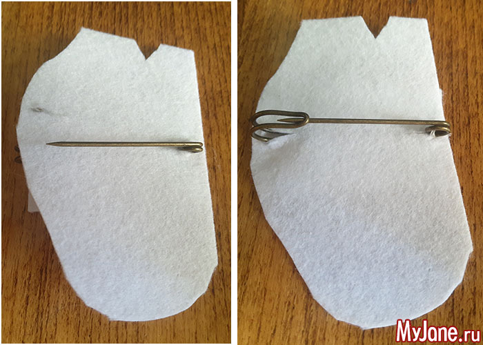 На большой заготовке отмечаем ушки булавки и делаем два небольших надреза.