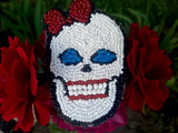 Переходим к вышивке банта. Крупным красным бисером продолжаем вышивать так же, как был вышит сам череп.