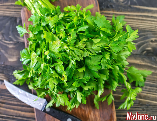 Один из самых популярных видов столовой зелени — это, конечно, петрушка. Многие хозяйки добавляют ее в салаты, первые и вторые блюда. Мало кто знает, что в этой травке содержится намного больше витамина С, чем в цитрусовых. Петрушка улучшает свертываемость крови, таким образом, она предотвращает кровотечения. Также она благоприятно действует на обмен веществ, активизирует работу желудочно-кишечного тракта и улучшает пищеварение. Она очищает почки и печень, действует мочегонно и препятствует образованию песка и камней.