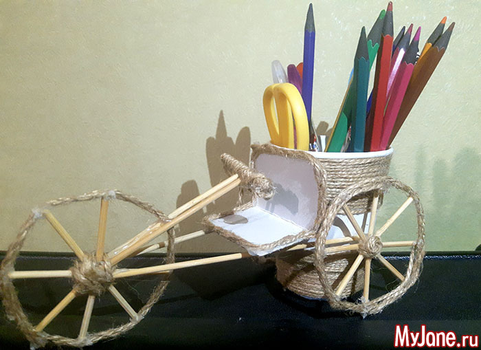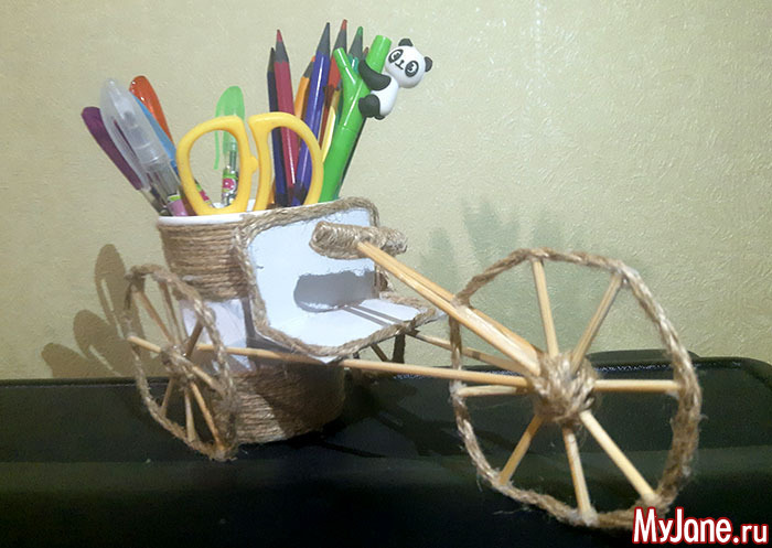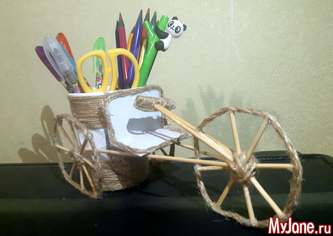 Таким образом получилась не только полезная вещь для хранения канцелярии, а еще неплохой декор рабочего стола.