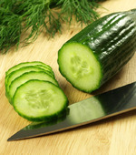 Грибы промыть, отварить, снова промыть, нарезать. Огурцы нарезать соломкой, смешать с грибами, добавить зелёный консервированный горошек, заправить майонезом, посолить, поперчить, посыпать измельчённой зеленью укропа.