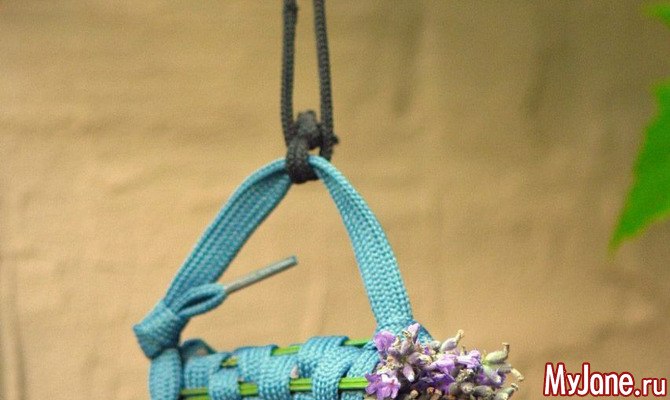 Теперь в шахматном порядке переплетаю ленту (у меня шнурок) вот таким образом.
