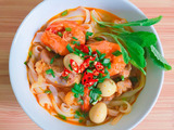 Выньте рыбу и креветки из бульона. Влейте в бульон оставшийся соевый соус и доведите бульон до кипения. Как только он закипит, положите туда лапшу и варите до готовности (примерно 7-8 минут). Консистенция бульона будет густой.