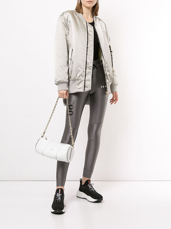 В модном ассортименте присутствуют и куртки-бомберы с трикотажной резинкой внизу, на рукавах и на воротнике-шальке. Здесь куртка-бомбер выполнена из серебристого материала, который по-прежнему остается популярным.А эта белая куртка сочетает в себе три материала: трикотаж двух видов и плащевку.