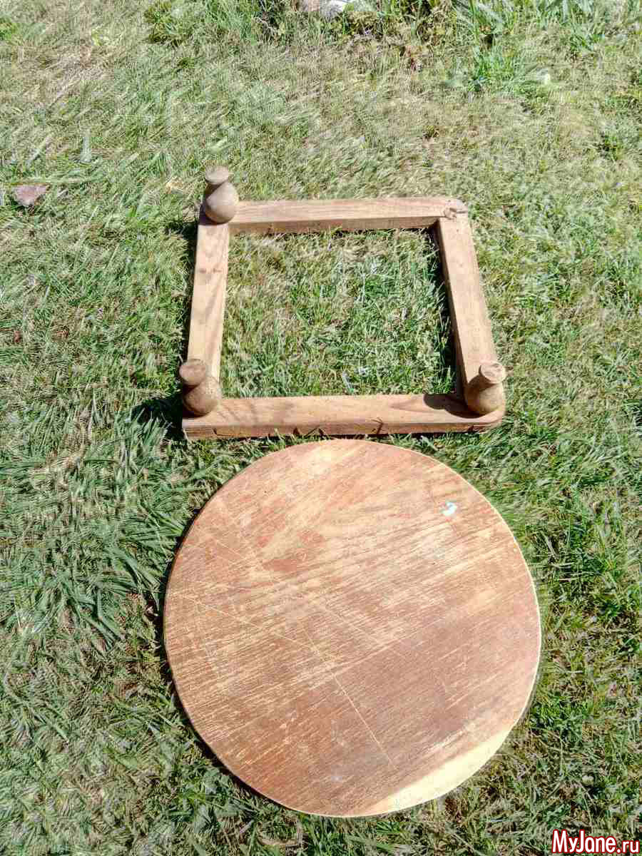 Пошла искать подручные материалы для этого предмета. На чердаке обнаружила крышку старого комода, дерево крепкое.