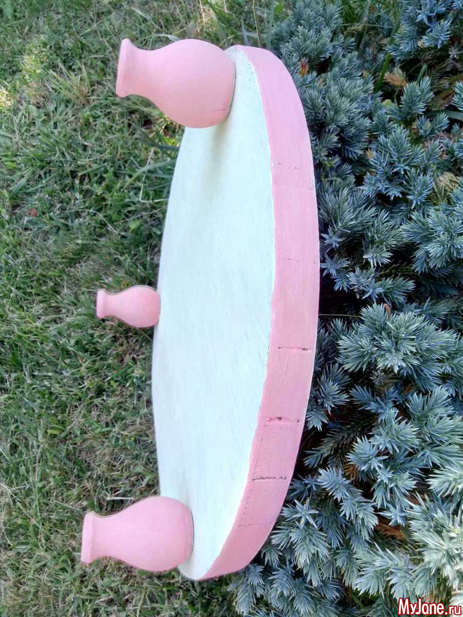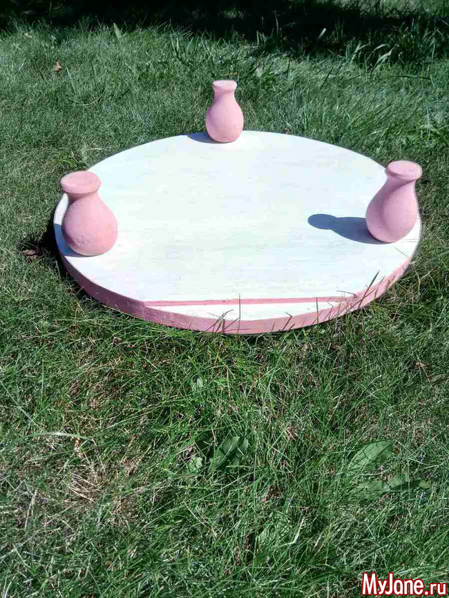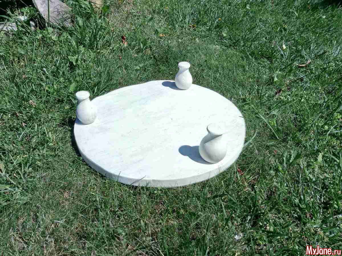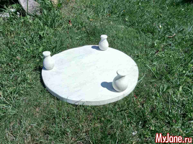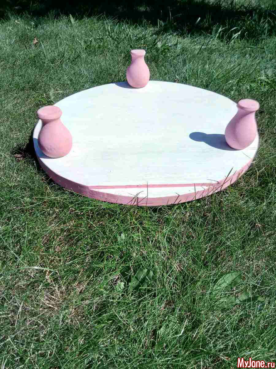 Сначала смутило отсутствие одной ножки, но подумала, а почему столик должен быть именно на четырех ногах. Круглая форма позволит сделать его устойчивым и на трех.