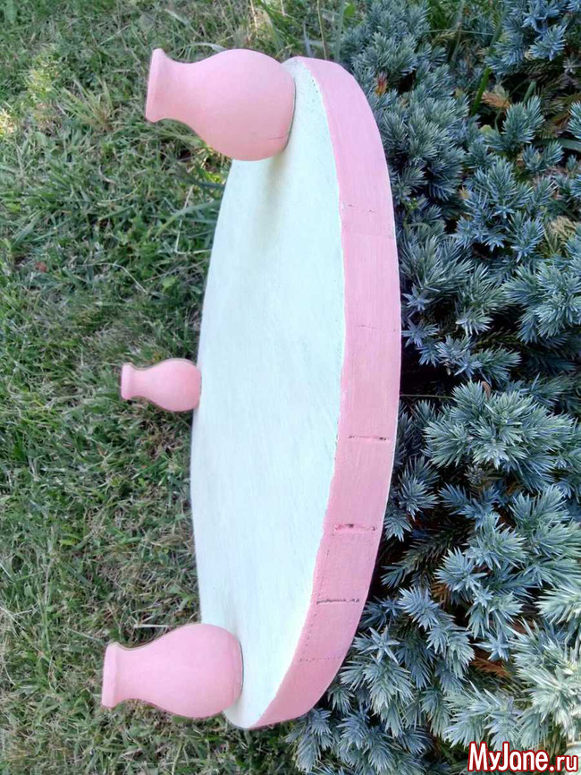 Оттенила ножки и боковую часть столика насыщенным розовым цветом, который присутствует на салфетках.