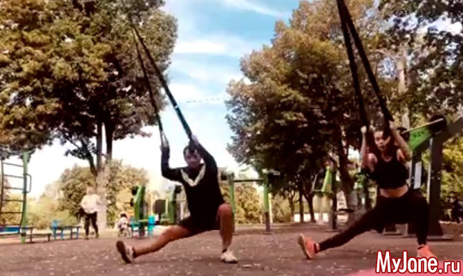 Этой невероятно теплой и живописной осенью MyJane.ru предлагает вам программу парной уличной тренировки с использованием спортивных петель. Где их взять? У многих любителей фитнеса этот легкий переносной тренажер уже имеется в личном пользовании. Если вы еще не обзавелись этим полезным инвентарем, то просто присмотритесь к спортивным площадкам вокруг дома – тренировочные петли уже не редкость на них. Также вы можете попытаться взять тренировочные петли напрокат в ближайшем спортивном клубе, попросить у знакомых или тренера. С помощью тренировочных петель вы сможете разнообразить множество классических упражнений, превратив скучную рутинную тренировку в интересное и полезное совместное времяпрепровождение. Приглашайте составить вам фитнес-компанию мужа, друга, подругу, детей.