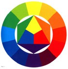 Далее понадобится цветовой круг. Двенадцать частей его состоят из основных, составных и сложных сочетаний. Три основных цвета – красный, синий, желтый - представляют костяк, равносторонний треугольник. Составные цвета – оранжевый, зеленый и фиолетовый - также располагаются в виде равностороннего треугольника. Оставшиеся сложные цвета создаются в результате смешивания основных и составных. Уровень интенсивности и светлоты цвета зависит от количества черного и белого цвета в базовом. Дополнительными цветами называются прямо противоположные цвета на цветовом круге.