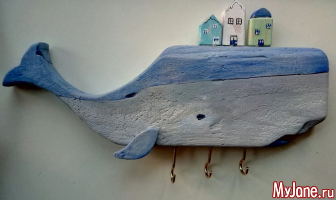 Приклеиваю домики с помощью силиконового клея, даю время хорошо подсохнуть. Все отлично приклеилось, осталось дополнить моего кита крючками, и я получу ключницу.