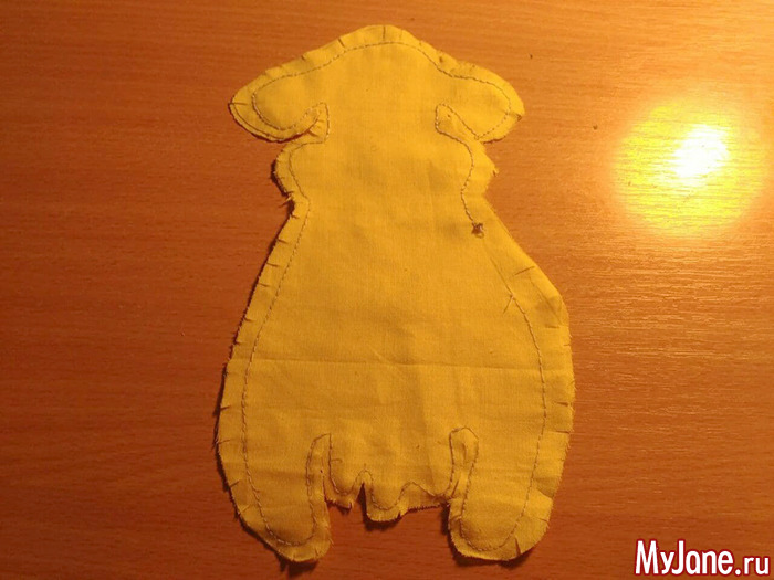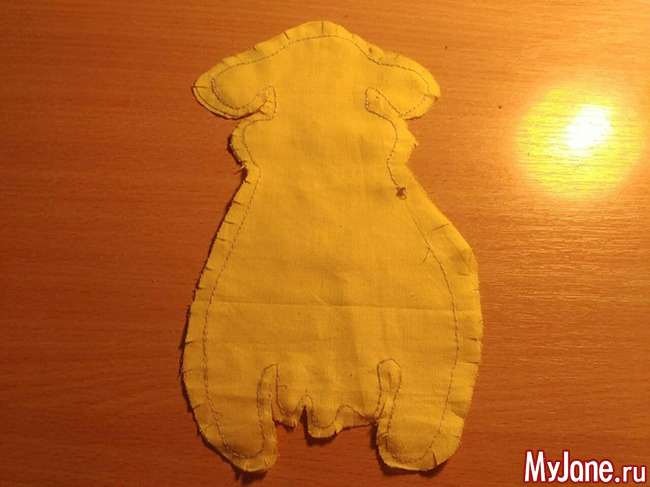 Прошиваем игрушку. Это можно сделать как на швейной машинке, так и вручную швом иголка назад. Оставляем сбоку отрезок, через который будем набивать. Делаем небольшие надрезы в сторону швов. Это сделает игрушку мягче и возле швов не будет заломов.