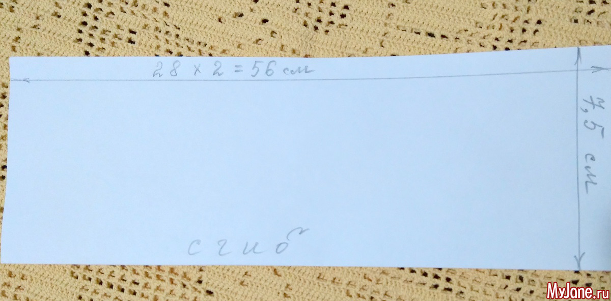 Из флиса белого цвета вырезаем прямоугольник размером 7,5 см на 56 см, из оставшегося кусочка позже выкроим круг для помпона.