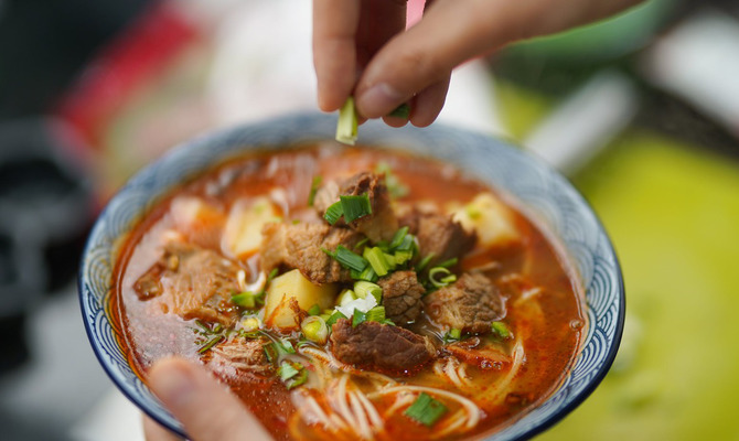Говядину отварить до готовности в подсоленной воде, охладить и нарезать тонкими ломтиками поперёк волокон. Так же нарезать сосиски или варёно-копчёный окорок.