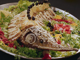 В советские времена в Кремле стол сервировали как на пир. Подавали целикового осетра, поросенка, фаршированного судака, язык в растяжку. Даже глухарей подавали целиком! Готовили их штук по 150. Для этого перья птиц для дезинфекции замачивали в уксусной кислоте, тщательно отмывали их зубными щетками. Глухарей фаршировали мясом, черносливом, курагой и запекали.
