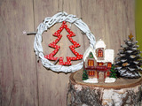 Или зимний домик - свеча, шишка и креативная красная елка.