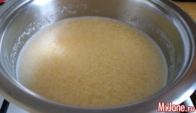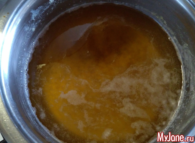 После того, как появятся пузырьки на поверхности, уменьшаем огонь до минимума и не вмешиваемся в процесс, лишь наблюдаем за его ходом.